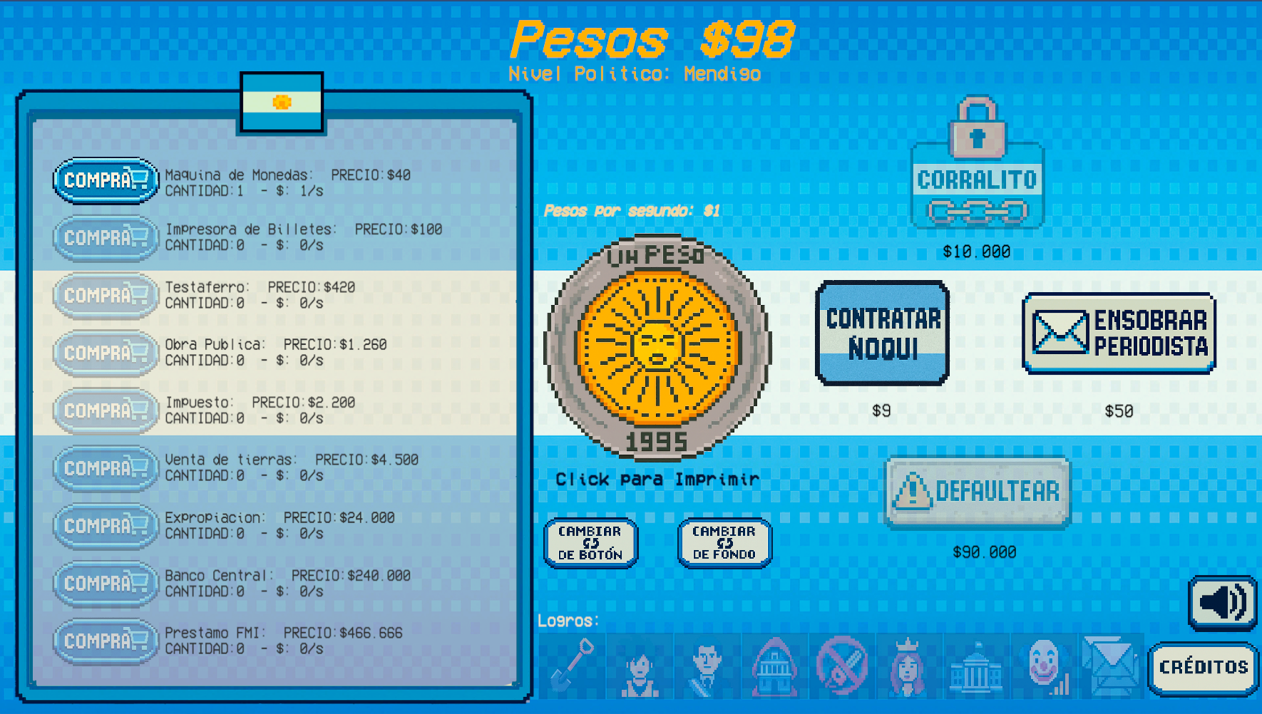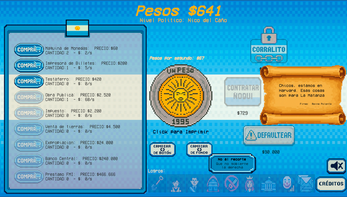 - Sistema de Corrupción: Cuanto más imprimís, más ascendés en el poder político, y podés compararte con tus colegas ladrones.
